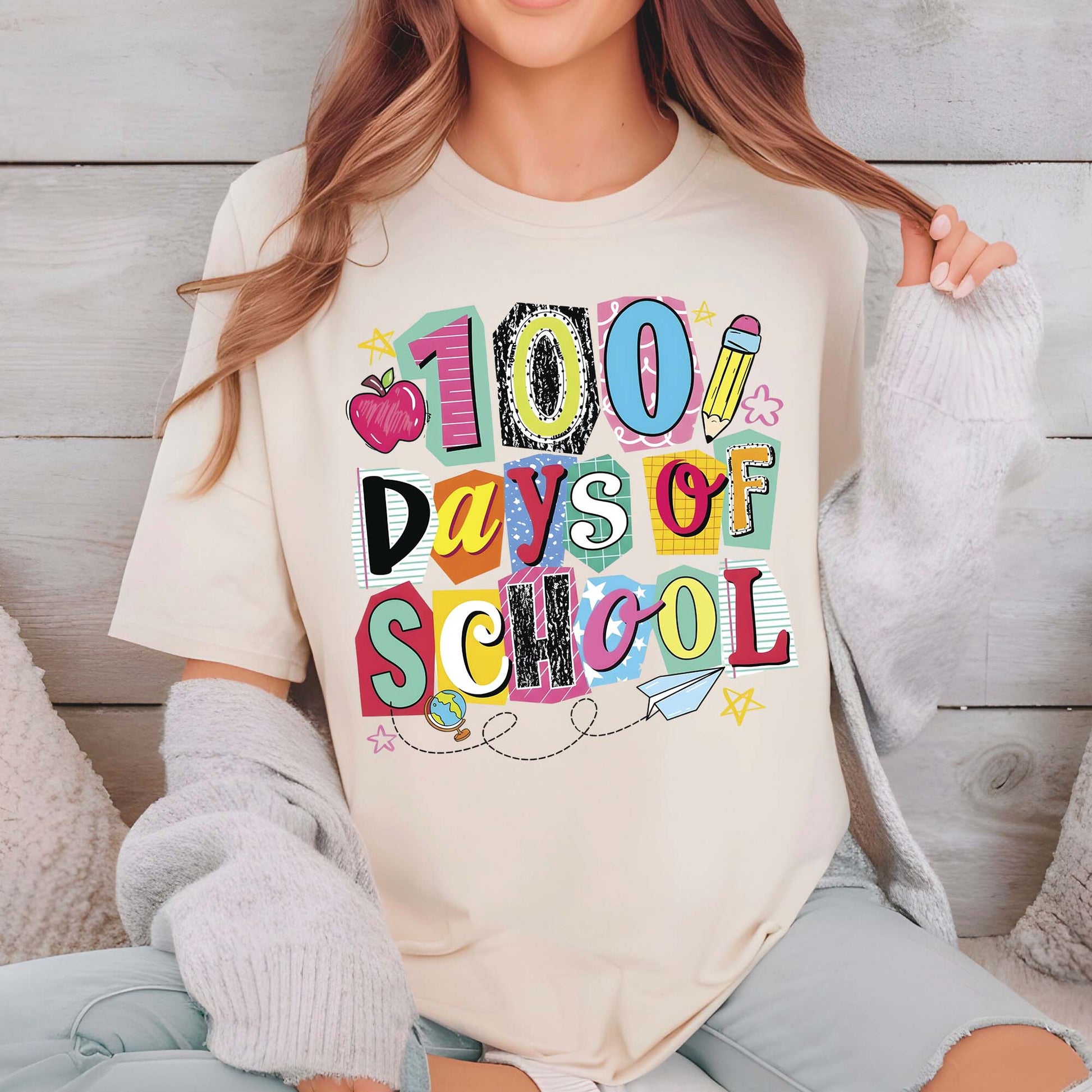 100 Days Of School Premade Gang Sheet Dtf Transfer Ready to Press Teacher Heat Transfer For Shirts, School Theme iron on Transfer Designs