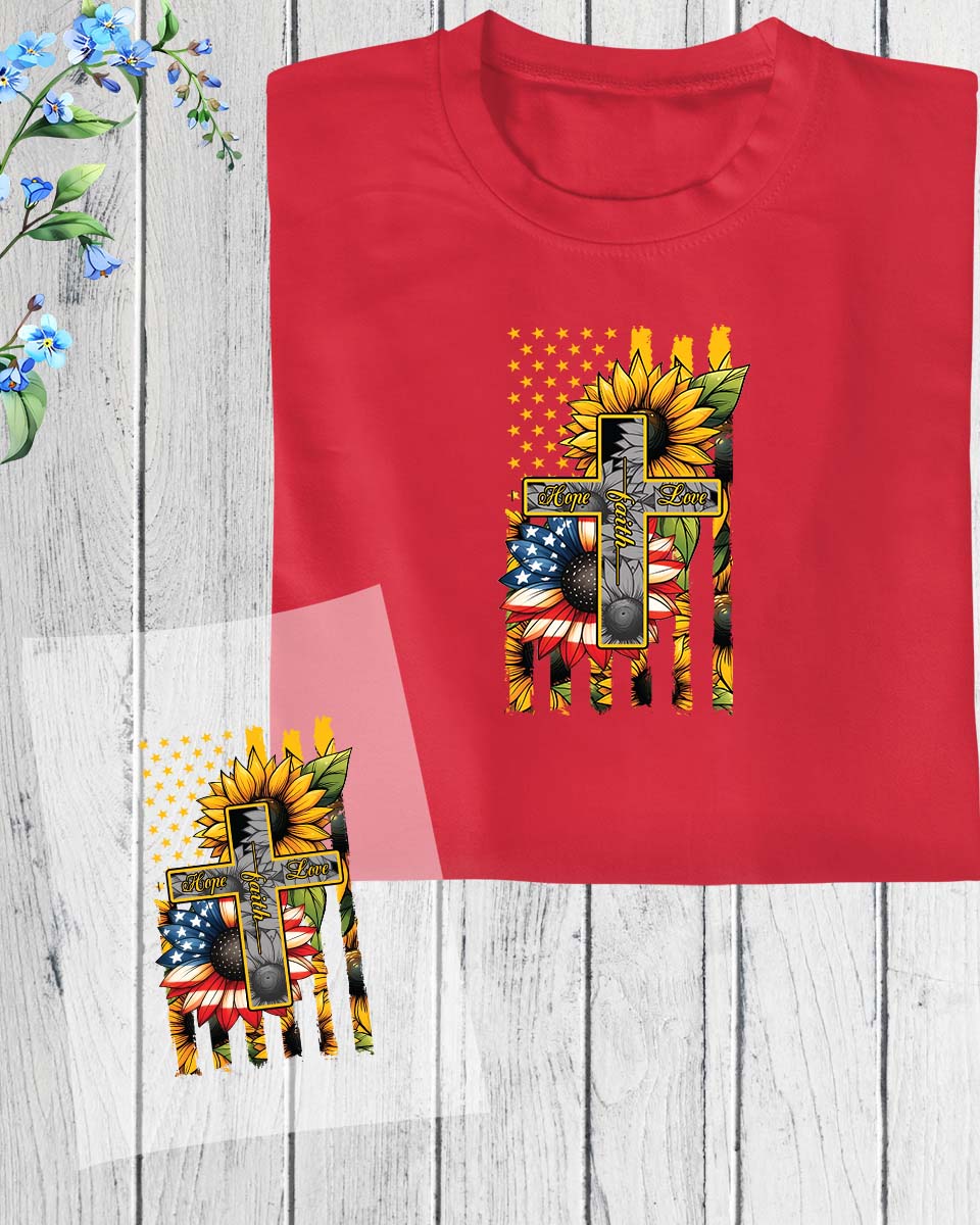 Hope Faith Love Sunflower Cross DTF Transfer Film