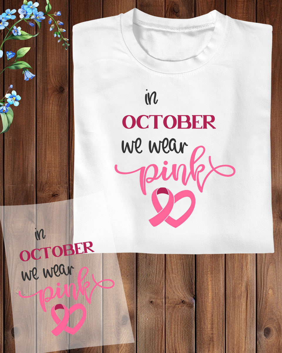 In October We Wear Pink Cancer Awareness DTF Transfer Film